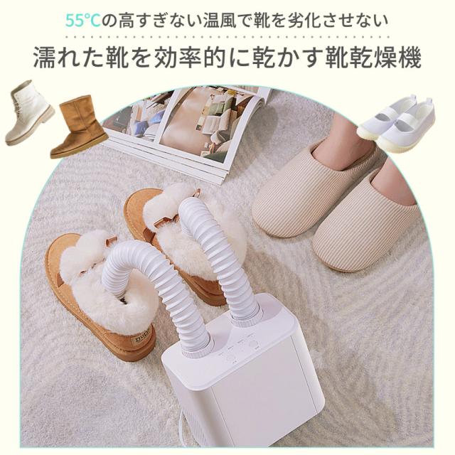温風で濡れた靴を乾燥させる!温風の出るホースを靴の中に入れて湿気を飛ばす靴乾燥機です。55℃の熱すぎない温風なので靴を劣化させることなく乾かすことができます。\こんな場面で大活躍!/・雨や雪で濡れてしまった靴を乾かしたい時・子供の上履きを洗って乾かしたい時・衣類用の乾燥機能じゃ靴が傷みそうで心配・ドライヤーをあてて乾かすのはめんどう