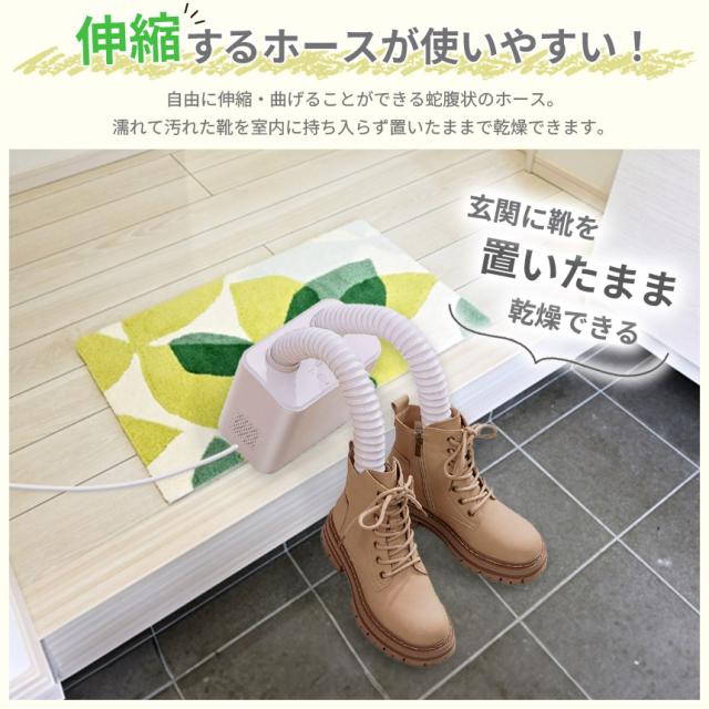 靴をホースに掛けたり、靴を床に置いたままでも乾かせます。