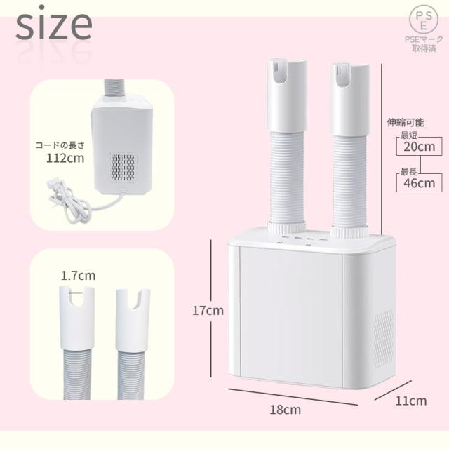 靴乾燥機 シューズドライヤー 二足同時 靴 乾燥 乾かす ドライ 乾燥機 シューズ タイマー機能付き くつ 伸縮 消臭 除菌 タイマー コンセント 給電式 PSE認証済み 雨 雪 スニーカー 革靴 ブーツ スパイク 上履き 長靴 玄関 室内 送風 静音 湿気 梅雨対策 レディース メンズ