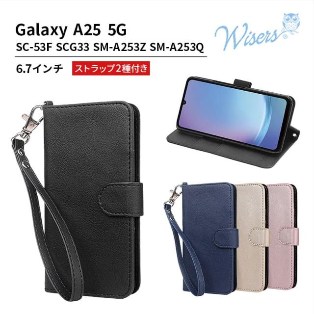 wisers Galaxy A25 5G SC-53F SCG33 SM-A253Z SM-A253Q ケース 手帳型 スマホケース 対応 (全4色) ( カードホルダー / スタンド機能付き ) ストラップ 2種付き ( ハンドストラップ /