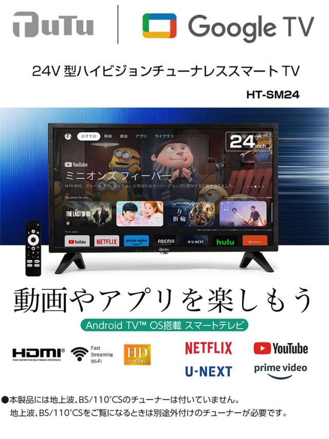 テレビ 24インチ 24V型 ハイビジョン チューナーレス スマートTV ブラック 一人暮らし HT-SM24【送料無料】
