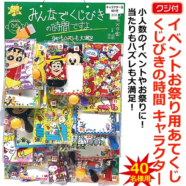 イベントお祭り用あてくじ(くじ付)くじびきの時間 キャラクター 40回 40付 40人分 縁日 学校イベント 文化祭 ホームパーティー キッズ お誕生日 子供会 パーティー