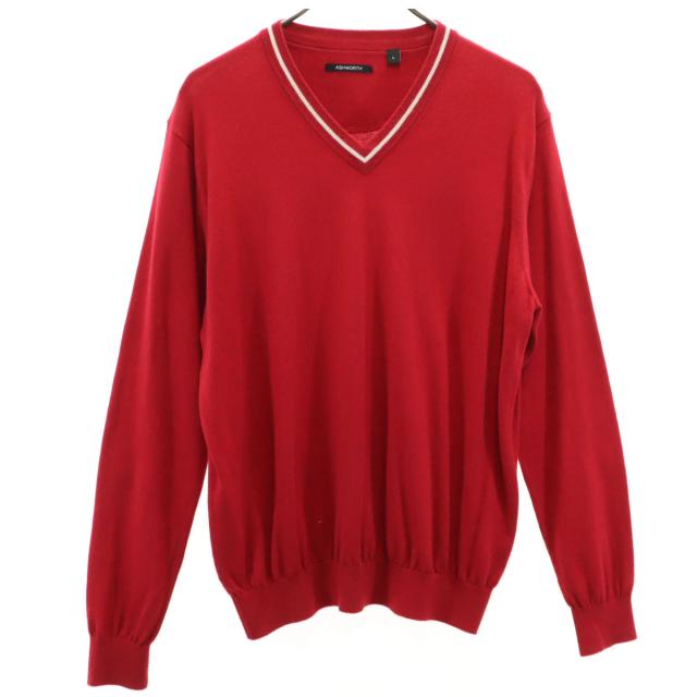 ASHWORTH アシュワース ゴルフ 長袖 Vネック ニット L レッド メンズ