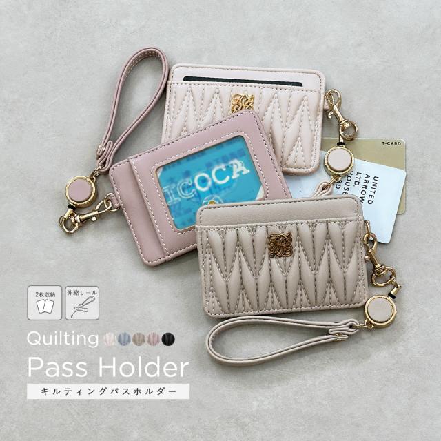 パスケース リール付き 定期入れ IDケース カードケース キルティング ロゴ 通勤 通学 通院 社会人 学生 社員証 定期ケース 推し活 伸縮 icカード ケース 2枚 薄い スリム 軽い 軽量 リール付きパスケース リール付きストラップ レディース