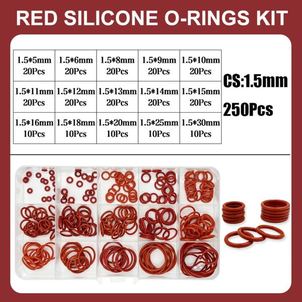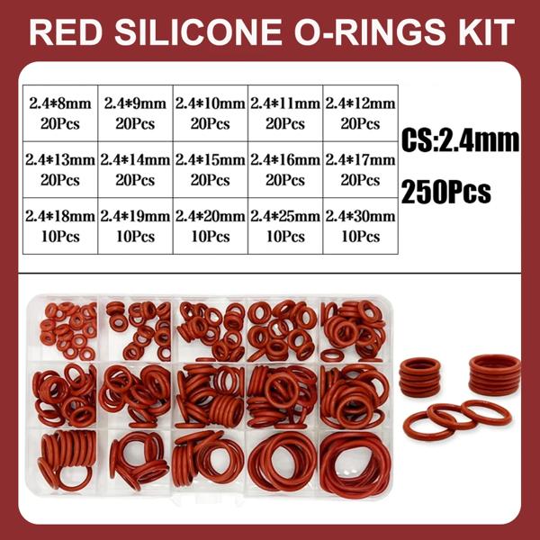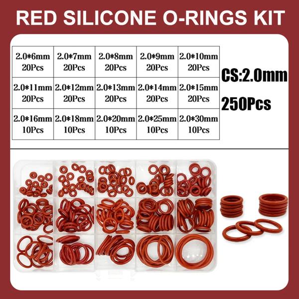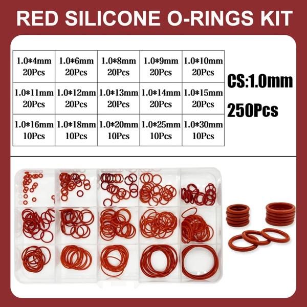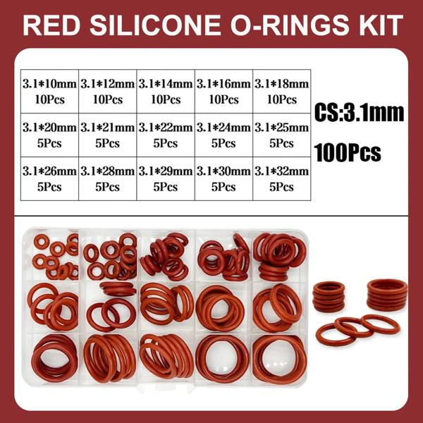 O リングガスケットシールシリコーン赤 O リングシールキット耐油 O リングゴム Oring 高温 VMQ ワッシャー CS1.0mm-3.1mm