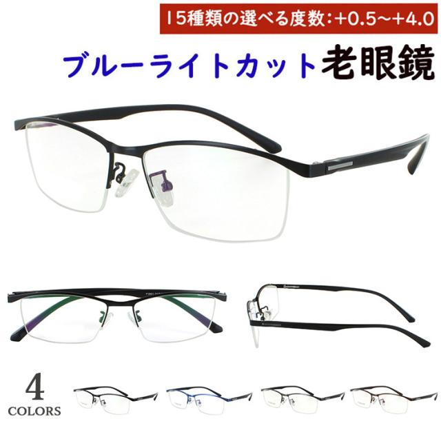 老眼鏡 おしゃれ ブルーライトカット メンズ リーディングラス ハーフリム メタルフレーム 柔軟性のあるTR素材テンプル mjm9901 軽量 かっこいい シャープ スタイリッシュ 0.5から 度数 4.0 まで +0.25刻みで選べる uvカット スマホ老眼鏡
