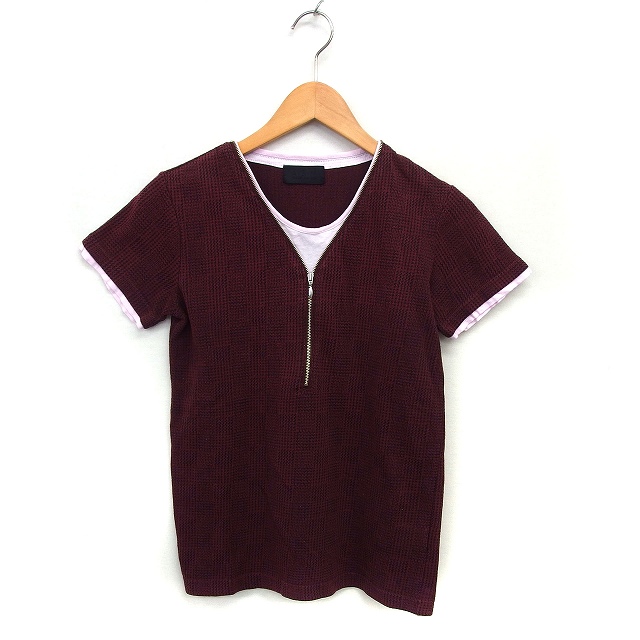 【中古】アトリエサブフォーメン ATELIER SAB for men フェイクレイヤード カットソー Tシャツ ジップ グレンチェック