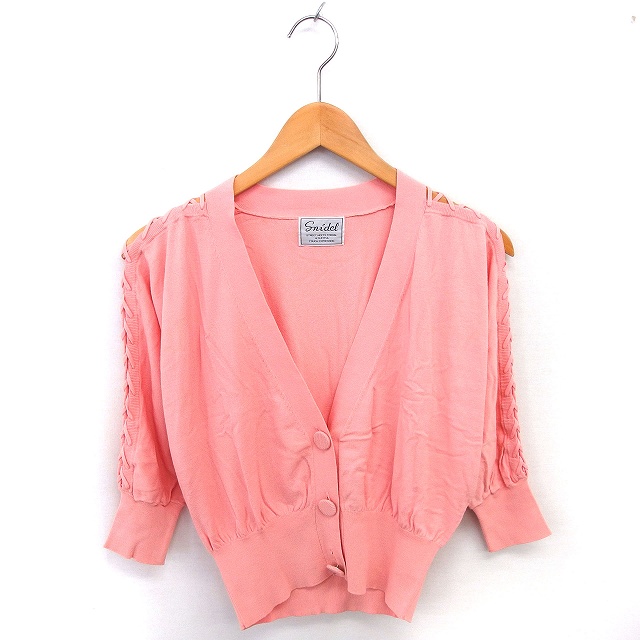 【中古】スナイデル SNIDEL カーディガン ニット レースアップ 編み込み 薄手 ドルマンスリーブ 七分袖 F ピンク /TT レディース