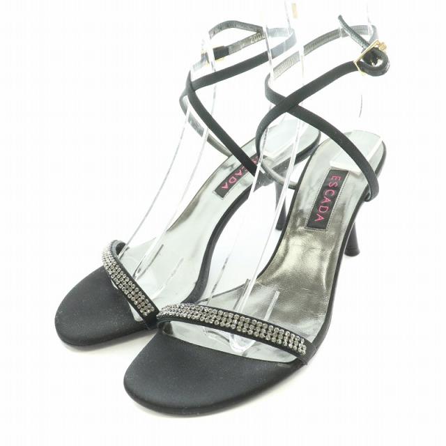 【中古】エスカーダ ESCADA ストラップサンダル ラウンドトゥ ハイヒール ビジュー装飾 37 黒 ブラック