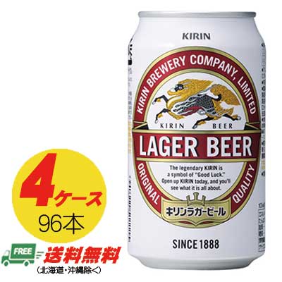 キリン ラガービール 生 350ml×96本 4ケース 送料無料 ビール類 缶ビール N