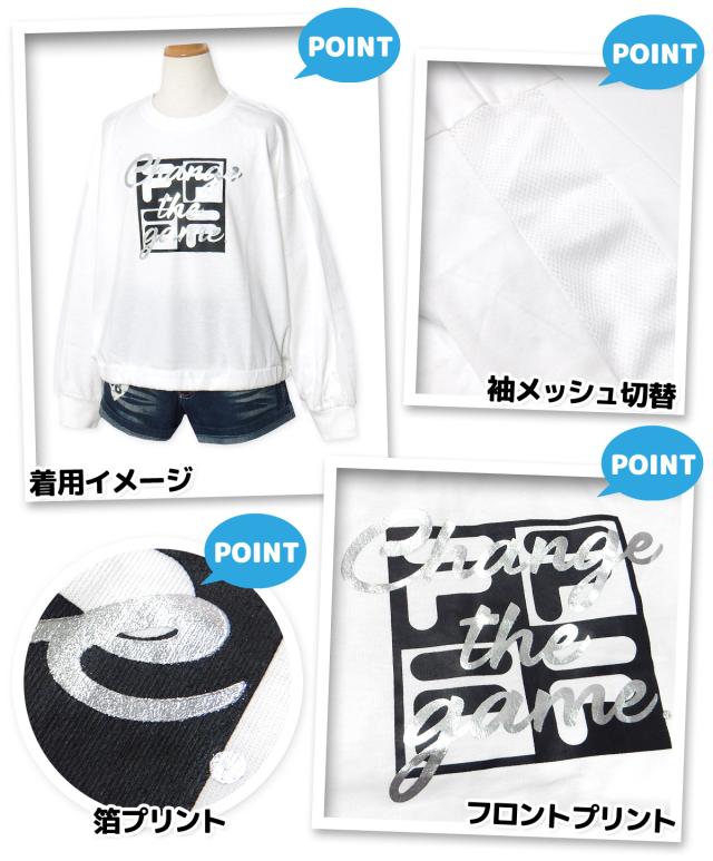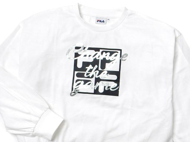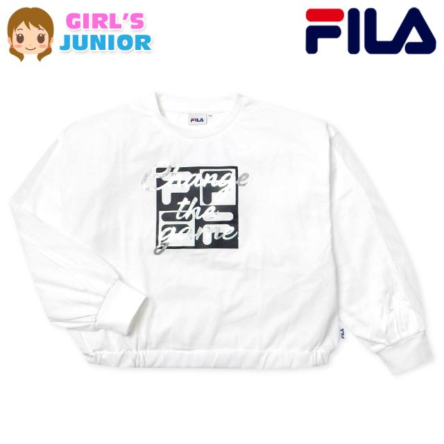 【送料無料】女児 ジュニア 天竺 長袖 Tシャツ FILA/フィラ ビッグシルエット ゆったり 袖メッシュ切替 箔プリント 子供服 女の子 140cm 150cm 160cm iw-1251a-ow【メール便対応】