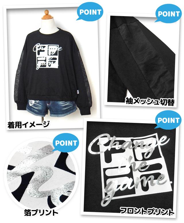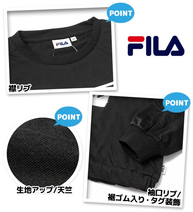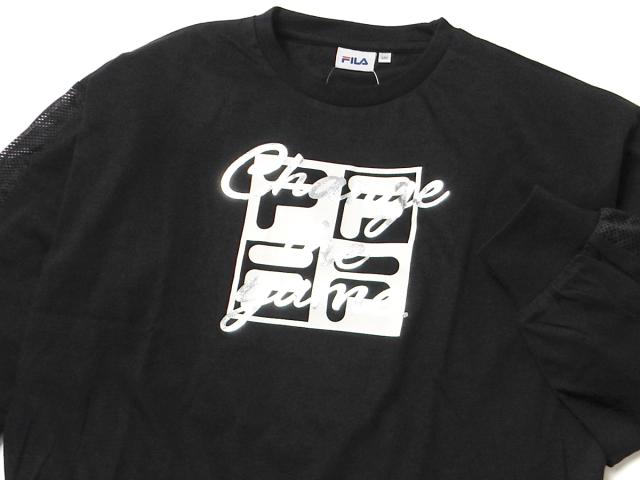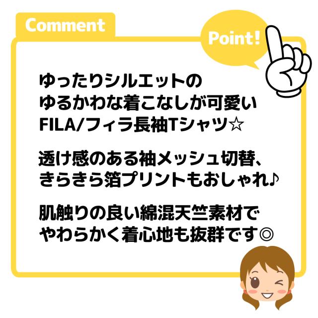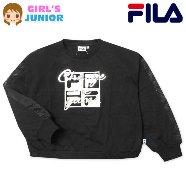 【送料無料】女児 ジュニア 天竺 長袖 Tシャツ FILA/フィラ ビッグシルエット ゆったり 袖メッシュ切替 箔プリント 子供服 女の子 140cm 150cm 160cm iw-1251b-bk【メール便対応】