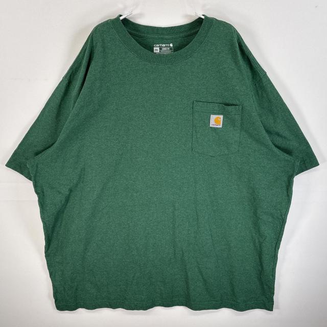 古着 カーハート Carhartt 半袖Tシャツ ワンポイント ロゴ 大きいサイズ 胸ポケ 2XL グリーン系 無地 メンズ