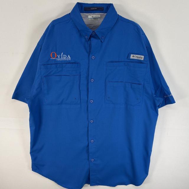 古着 コロンビア Columbia 半袖シャツ PFG 胸ポケ ワンポイント ロゴ M ブルー 無地 メンズ