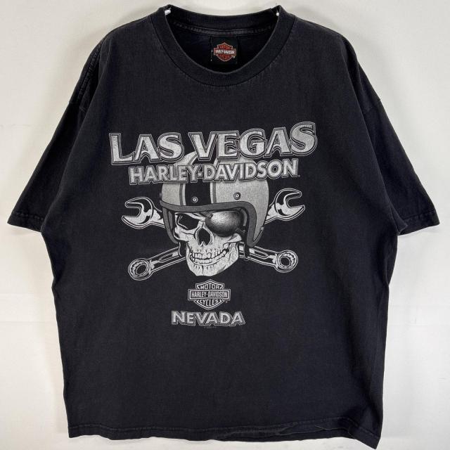 古着 ハーレーダビッドソン HARLEY DAVIDSON 半袖Tシャツ 両面 ラバープリント スカル 肉厚 ブラック メンズ