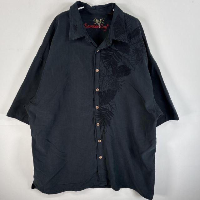 古着 Bamboo Cay 半袖シャツ アロハシャツ 刺繍デザイン シルクライクシャツ XXL ブラック 無地 メンズ