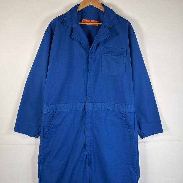 古着 レッドキャップ RED KAP USA製 長袖つなぎ オールインワン ワーク 作業着 大きいサイズ サイドポケット 48 LN ブルー 無地 メンズ