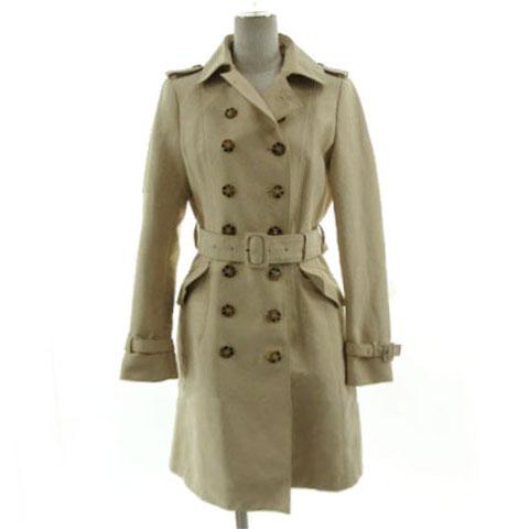 【中古】ザラウーマン ZARA WOMAN コート トレンチコート ダブル ベルト付き コットン混 ベージュ S レディース
