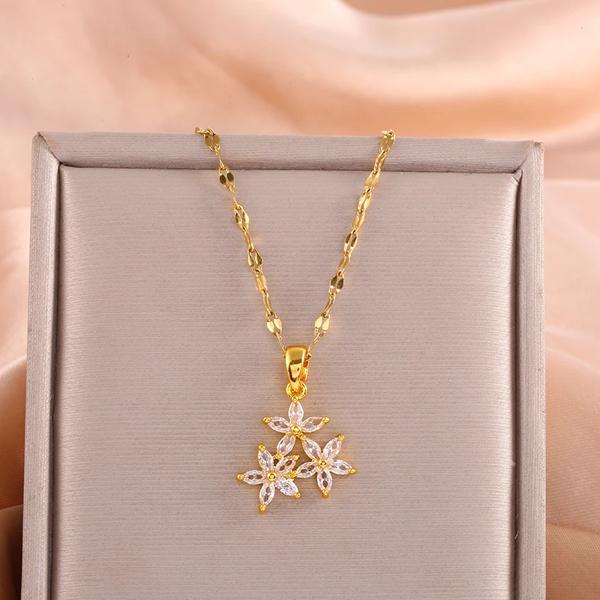 女性のための3つの花びらの花のクラスターペンダントネックレス、スタイリッシュで絶妙な、1個