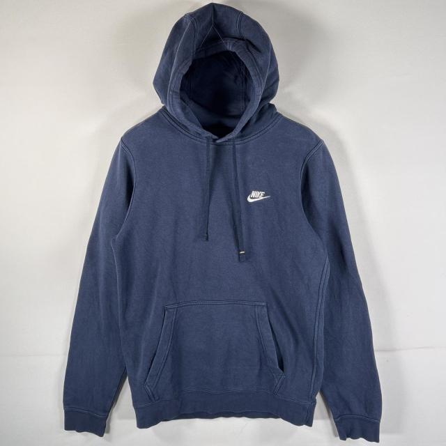 古着 ナイキ NIKE パーカー フーディー プルオーバー フード紐 ワンポイントロゴ刺繍 マフポケット S ネイビー メンズ