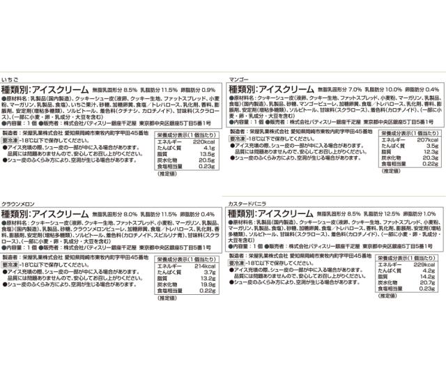 プレミアムシューアイス(いちご・クラウンメロン・マンゴー・カスタードバニラ)4種 ×各1個 計4個