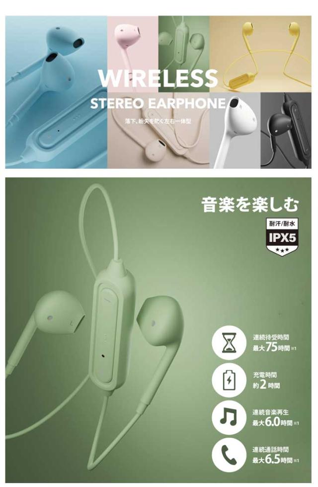 耳に負担の少ないインナーイヤー型ワイヤレスステレオイヤホンです。