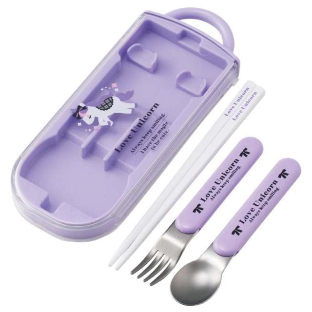 スケーター(Skater) お弁当 トリオセット 箸 スプーン フォーク ラブ ユニコーン 子供用 抗菌加工 開けやすいスライド式 日本製 TACC2AG-A