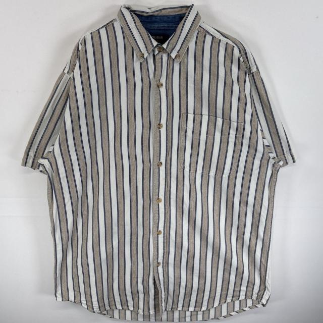 古着 90s/90年代 COLISEUM 半袖シャツ ボタンダウンシャツ 肉厚 大きいサイズ L ホワイト系 ストライプ メンズ
