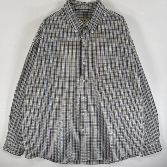 古着 エディー・バウアー Eddie Bauer 長袖シャツ ボタンダウンシャツ 厚手 大きいサイズ XL ブルー系 チェック メンズ
