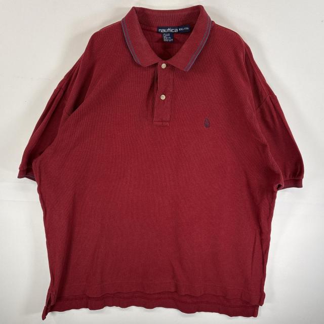 古着 90s/90年代 ノーティカ NAUTICA 鹿の子 半袖 ポロシャツ ワンポイント ロゴ 刺繍 リブ切替 USA製 XXL ワインレッド 無地 メンズ