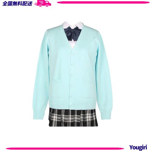 [jinghuiyue] スクールカーディガン 女子 制服 ゆったり ニット 無地 通学 高校生 厚手 学校用 ライトブルー(JJP0006LBL-L)