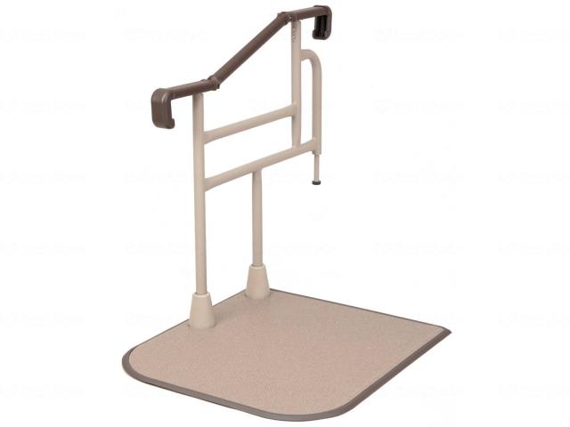 横向き。後ろ向きでも昇降しやすい。POINT1.あがり框(かまち)の上・下両方で使いやすいPOINT2.横向き昇降しやすい手を置ける平手すり部分POINT3.後ろ向きに降りやすい握れる縦手すり部分○組立品○最大使用者体重:100kg材質○ベース・手すり・フレーム:スチール○ベース縁ゴム:塩化ビニル樹脂○手すり構造部材:アルミニウム○手すり被覆:塩化ビニル樹脂○支柱カバー:ポリプロピレンジョイント:ポリアセタール○端部キャップ:ポリブチレンテレフタレート○マット:塩化ビニル樹脂○カーペット:合成繊維サイズ:幅72.5×奥行76.5×手すり高さ72.5〜82.5cm上側、下側の手すり高さを個別調整可能