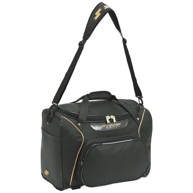 proedgeシリーズのショルダーバッグ。本体収納45Lに加え、外側にもポケット収納が付いた大容量バッグ。前ポケットは脱着式のため、チーム名や学校名などの刺繍が可能です。チームカラーに合わせて選べる4色展開。バッグの内側にはproedgeロゴの総柄生地を採用し、中身を確認しやすい造りになっています。対象:メンズ・ユニセックス素材:合成皮革仕様その他:●サイズ:本体長さ48×高さ35×幅25cm(容量:約45L) 前ポケット:縦21×横35cm ●前ポケット脱着式生産国:中国製カラー:(9038)ブラック×ゴールド