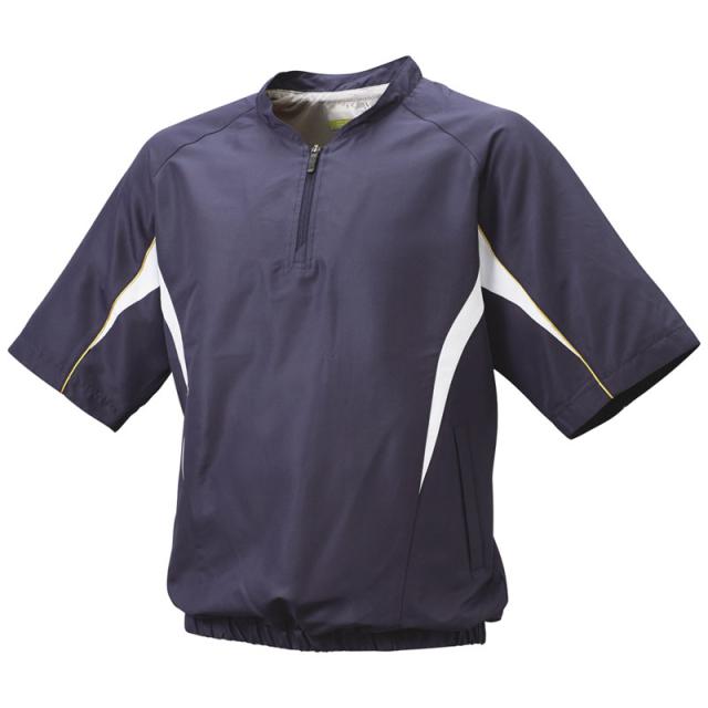 裏地メッシュ仕様のハーフZIP半袖ジャケット。
