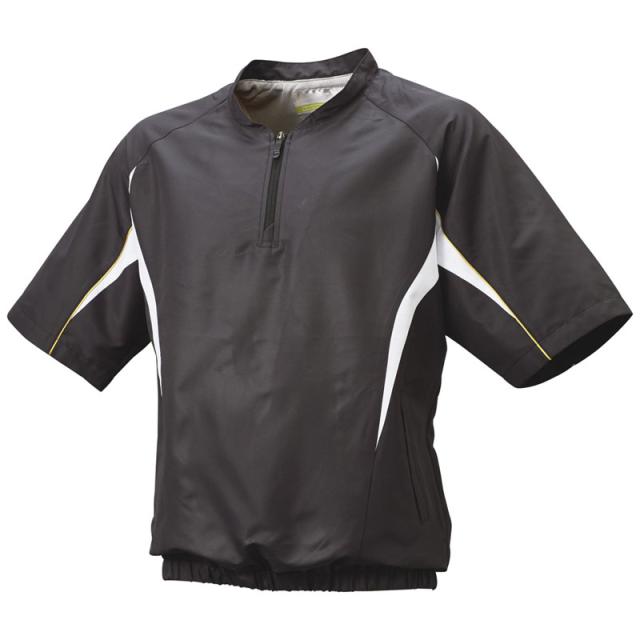 裏地メッシュ仕様のハーフZIP半袖ジャケット。