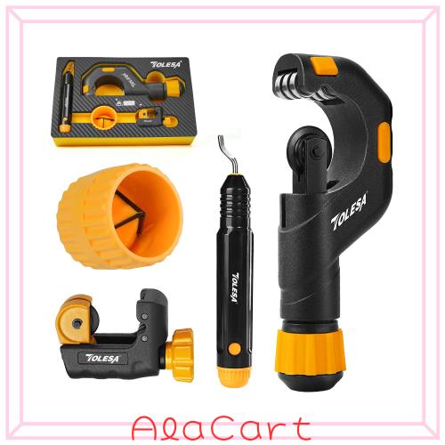 TOLESAパイプカッターツールセットは、プロやDIY愛好家に不可欠なツールで、銅、ステンレス鋼、金属、PVCパイプの切断に精度、耐久性、汎用性を提供します。 シャープなSKDカッターホイールと6つの高密度ボールベアリングローラーを装備し、しっかりとしたグリップを確保し、毎回滑らかで正確なカットを実現し、不安定なクランプによる表面の凹凸のリスクを排除します。 配管作業でも、カスタムDIYプロジェクトでも、このツールはプロフェッショナルな結果を保証します。 高密度で軽量なアルミニウム合金製で、カッターは頑丈で耐久性があり、破損することなく複数のカットを処理できます。 軽量構造で取り扱いが簡単。頑丈な構造は長寿命で、大小を問わずあらゆるプロジェクトで信頼できるパートナーです。 使いやすいデザインのTOLESAパイプカッターは、あらゆるスキルレベルのユーザーが利用できるようにします。 ノブを回してパイプを固定し、カッターをパイプの周りで回転させ、回転ごとにカットが完了するまで締めるだけです。 この直感的なメカニズムにより、初心者でも簡単かつ自信を持って精密できれいにカットできます。 切断以外にも、このツールは万能なオールインワンソリューションです。 切断、バリ取り、リーマ機能を兼ね備えており、スムーズで漏れのない接続を作るために不可欠なツールです。 工具セットには、頑丈なパイプカッター(3/16-2インチ)、狭いスペース用のミニパイプカッター(1/8-3/4インチ)、エッジを滑らかにするためのバリ取りツール、接続用のパイプを準備するためのパイプレマーが含まれています。 この包括的なセットは、1つのパッケージですべてのパイプ切断のニーズを満たします。