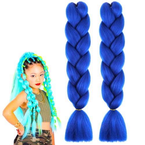 ウィッグ専門店クラッセ ブレイズ毛束 2本セット エクステ キッズ ダンス コーンロウ ボリューム 編み込み グラデ 耐熱 子どもから大人まで 選べる32色 ブルー