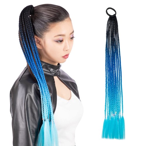 クラッセ ウィッグ専門店制作 ゴム付き 簡単 ブレイズエクステ キッズ 子どもから大人まで 動画あり グラデ 三つ編み カットで長さ調整可能 ダンス お祭り イベント ●● 黒×青×水色●●