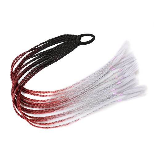 [TefuRe] 三つ編み エクステ ポニーテール つけ毛 キッズ ダンス ゴム で簡単装着 ブレイズエクステ動画有 赤 レッドシルバー Q37-C17