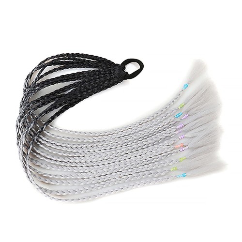 [TefuRe] 三つ編み エクステ ポニーテール つけ毛 キッズ ダンス ゴム で簡単装着 ブレイズエクステ 動画有 シルバー Q37-B36