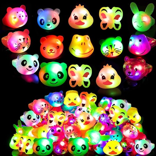 [FLYZY] 光る指輪 おもちゃ 27個入 動物 お祭り 景品 おもちゃ 子ども 縁日グッズ ライブ用 キラキラリング ピカピカ 光るリング 子供・大人対応可 6歳以上