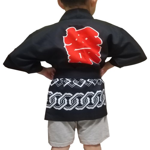 [スペースホビー] 色を選べる 法被 はっぴ 祭 子供 こども キッズ 幼稚園 小学生 腰ひも付き イベント 行事 楽しいひと時 楽しい思い出 一体感 おそろい コーデ 男の子 女の子 衣装 学校 家の中 (黒)