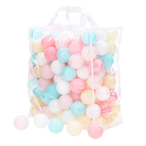 ボール個数200個 サイズボール:直径約6cm/収納バッグ:35cm×18cm×40.5cm 重量ボール:約5g/配送時:1.7kg 対象年齢3歳以上 ボールの色ベビーピンク/ピンク/水色/黄色/白 ※対象年齢未満のお子さまには絶対に与えないでください。 ※商品の色は生産時期により多少異なる場合がございます。 ※画像はイメージです。ボールプール用のキッズプールなどは付属しません。