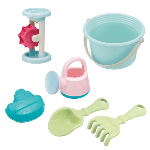 トイローヤル ワイドバケツセット (お砂場遊びセット) かわいい パステルカラー 砂場 (バケツ/クマデ/じょうろ/スコップ/砂型船/水車)