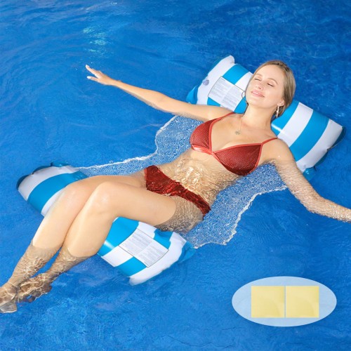 Formemory 浮き輪 フロート 1人乗り 浮き輪 大人用 浮き輪ベッド 水上ハンモック 浮き輪ベッド フロート 70cmX130cm ウォーターハンモック+ビニール補修用テープ2枚付き 大人用 浮き具 水上ハンモック 折りたたみ うきわ 暑さ対策 プール 夏海遊び 水遊び プール 一人乗りプールパーティー 海水浴 日光浴 空気入れ パッチステッカー付き (ストライプ&ライトブルー)