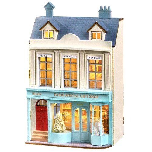 moin moin ドールハウス ミニチュア 手作りキット セット レトロ タウン 並べて 街並み 街 町 パリ ヨーロッパ 前面がパカッと開く アンティーク 店 LEDライト | スペシャルギフトショップ 2402dh413