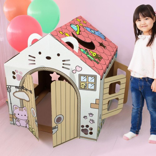 ニャンにゃんぬりえハウス ダンボールハウス 子供 段ボールハウス 組み立て簡単 塗り絵 塗り絵ハウス キッズハウス ままごと お店屋さんごっこ こども おもちゃ 手作りハウス 秘密基地 おもちゃの家