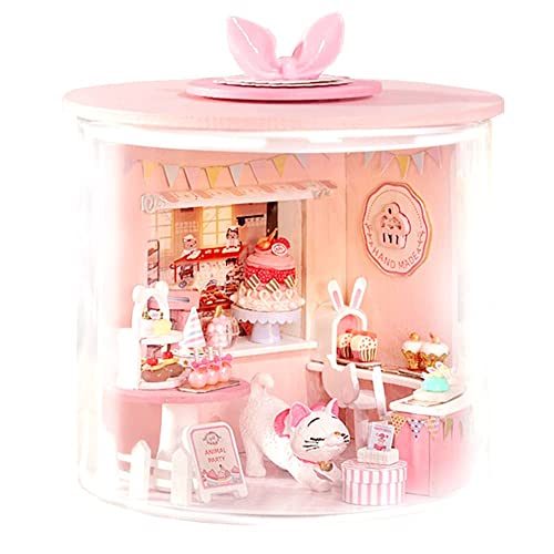 moin moin ドールハウス ミニチュア 手作りキット セット 英語説明書 テラリウム 瓶 ドリーム ボトル 手のひらサイズ 初心者 童話 おしゃれ インテリア 喫茶店 カフェ ねこ ピンク (猫のケーキ屋さん) 2208dh346