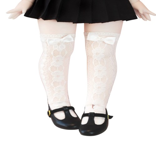 ドール靴下レースソックス1/3と1/4ニーハイソックス白地透け感と繊細感BJD人形服 (クマコ, 膝上)