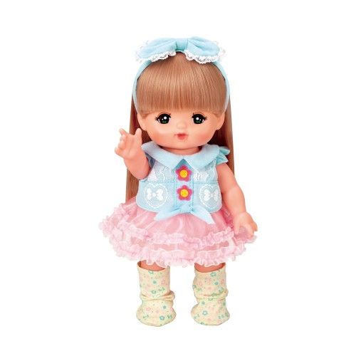 対象年齢:3歳以上 セット内容:ヘアバンド、デニムシャツ、スカート、くつした 大きなリボンのヘアバンドとデニムシャツ、スカートでガーリースタイルが楽しめるきせかえセット 胸元のレースやフリフリスカートでおしゃれしよう 妹のネネちゃんにも使用可能